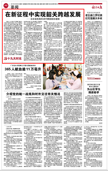 与此同时,我们要认真学习党的十九大报告精神,奋战“决胜期”,如期全面建成小康社会。开启“新征程”,凝神聚气,弯道超车,实现韶关的跨越发展,全面建设社会主义现代化。