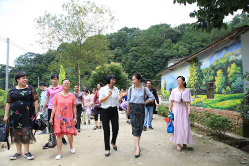 接下来,下埔村村支书、村主任潘静雯带领全体党员同志参观了下埔村的建设情况。在参观的过程中,潘支书热情洋溢地讲述了她如何放弃珠三角的高薪工作,回村里任村支书、村主任一步步走来的奋斗历程,介绍了下埔村近几年发展的辉煌成就。在基层党建的引领下,下埔村实现了从一个贫困落后几近被人遗忘的普通村落,到环境整洁、规划科学、产业带动、个性独具这样一个美丽乡村的华丽转身。从潘支书的讲述中,大家深刻感受到了“不等不靠,敢想敢干,艰苦奋斗,奋勇争先,没钱也要干,群众就是最可靠的力量”的下埔精神。