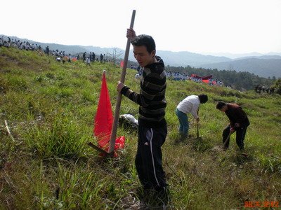 今年是纪念义务植树运动28周年。为纪念这一活动。3月14日我校团支部组织本校青年一行六人,迎着早春的阳光,踏着清晨的雨露,参加由团市委组织的“绿色广东、青年当先”2009年保护母亲河植绿护绿行动,用实际行动掀起了植树造林、绿化韶关的热潮。