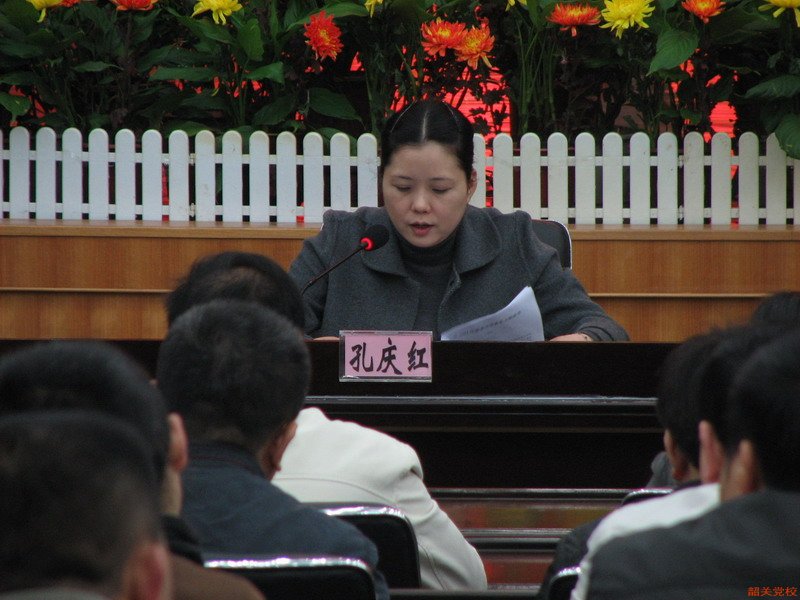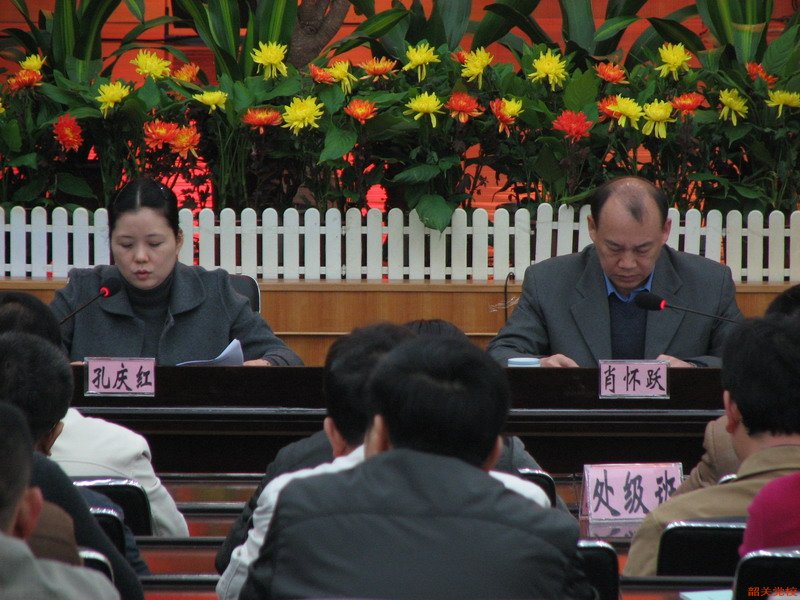 会上,常务副校长孔庆红同志作开学动员。孔庆红从举办这期培训班的目的、意义入手,要求各位学员要紧紧围绕韶关市"十二五"发展规划和市委、市政府中心工作,贴近"经济、维稳、民生、党建"四大主题和韶关大旅游发展战略,端正学习态度、突出培训重点、严守制度要求、加强党性修养,既要学好基本理论、基本原理,又要善学善思,把理论学习和工作思考结合起来,努力提升学习层次、提升工作境界、提升自身素养、提高培训效果。