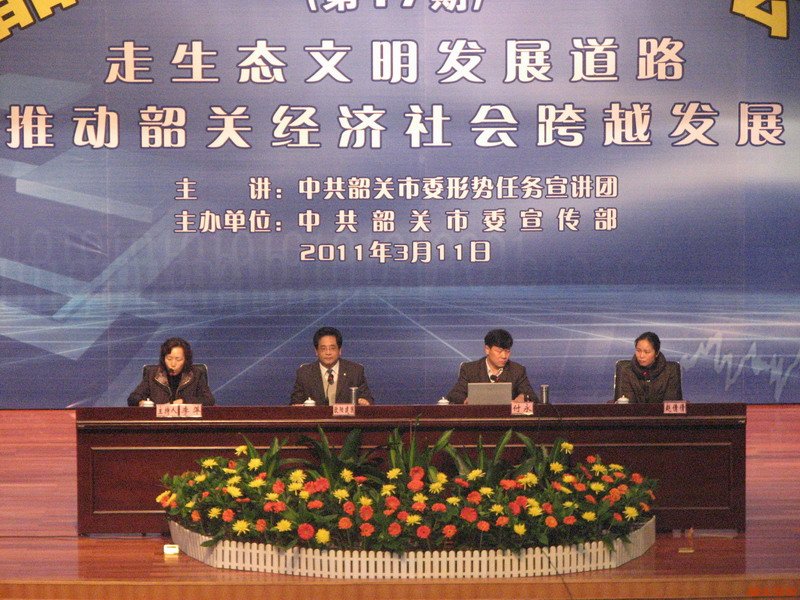 报告会由市委常委、宣传部长李萍主持。韶关学院博士付永、我校校委委员欧阳建国、赵倩倩等三位宣讲团成员分别围绕我市“十一五”时期的成就和“十二五”经济社会发展思路、发展原则和发展目标,经济建设主要任务、文化建设、改善民生、体制改革、社会管理和党的建设主要任务等方面作了深入系统的阐述和解读。