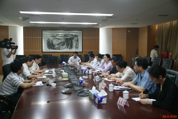 在座谈会上,常务副校长孔庆红对谭泽中一行的到来表示热烈欢迎,对省委党校长期以来对我校的关心指导表示感谢。并汇报了我校在市委正确领导下,在省委党校指导下,认真贯彻落实《2010-2020年干部教育培训改革纲要》和《党校工作条例》、《行政学院工作条例》,紧扣韶关市“十二五”发展规划和市委、市政府中心工作,优化教学内容,深化教学改革,提升科研水平,加强队伍建设,严格管理服务,加强领导班子和机关党的建设,推进全市创先争优,创新市县党校办学体制以及在学习型党组织建设和新一轮大规模培训干部、大幅度提高干部素质中做出的创新做法与取得的成效。 在座谈会上,市委组织部副部长、市直机关工委书记姚远通汇报指出,韶关市委、市政府高度重视党校工作,主要体现在五个方面:一是把党校工作纳入总体工作部署,二是坚持市委主要领导到党校讲课、作报告制度,三是大力加强党校基础设施建设,四是高度重视党校队伍建设,五是切实做好党校经费保障等工作。 省委党校常务副校长谭泽中对我校教学改革创新取得的成绩和优异的校园环境予以高度评价,对我校近年来的工作予以充分肯定。谭泽中认为,我校的工作可以总结为“一个高度、五个好”,即:市委高度重视,校委班子精神状态好、教学质量好、校园环境好、管理服务好、队伍建设好。谭泽中指出,党的十七大提出了新一轮大规模培训干部、大幅度提高干部素质的战略目标,党的十七届四中全会提出了建设学习型政党的要求,党校工作既面临着重大的机遇,又面临着光荣而艰巨的任务。党校工作要坚持党校姓“党”,坚决贯彻中央和省市委的决策部署,围绕中心,服务大局;要充分发挥党校主阵地作用,不断深化教学改革,增强教学的针对性、实效性;要进一步探索内部体制管理,使管理机制更符合党校的要求,大力加强校风学风建设;要深入基层调研,不断加强师资队伍建设。同时强调,韶关市委党校在市县党校办学体制改革方面成果显著,走在全省前列,要再接再厉,认真总结经验,争取取得更大的成就,对全省市县党校办学体制改革有更大的启示和推动作用。 座谈会前,谭泽中同志一行还兴致勃勃地参观、视察了我校校园。
