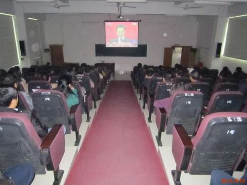 (11月8日,校委班子成员与全体教职工及在校学员一起在阶梯教室认真收看了十八大开幕式电视直播)
