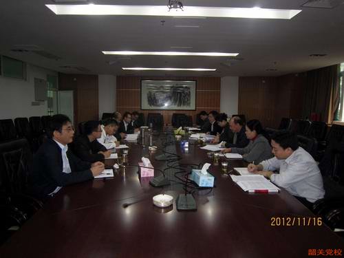 11月16日,韶关市委党校召开学习党的十八大精神座谈会,市委常委、组织部部长、党校校长肖怀跃出席并讲话。