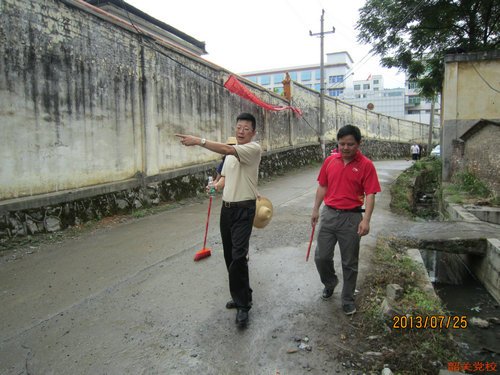 (副校长胡韶斌、副调研员黄永雄检查本次大扫除的成效)