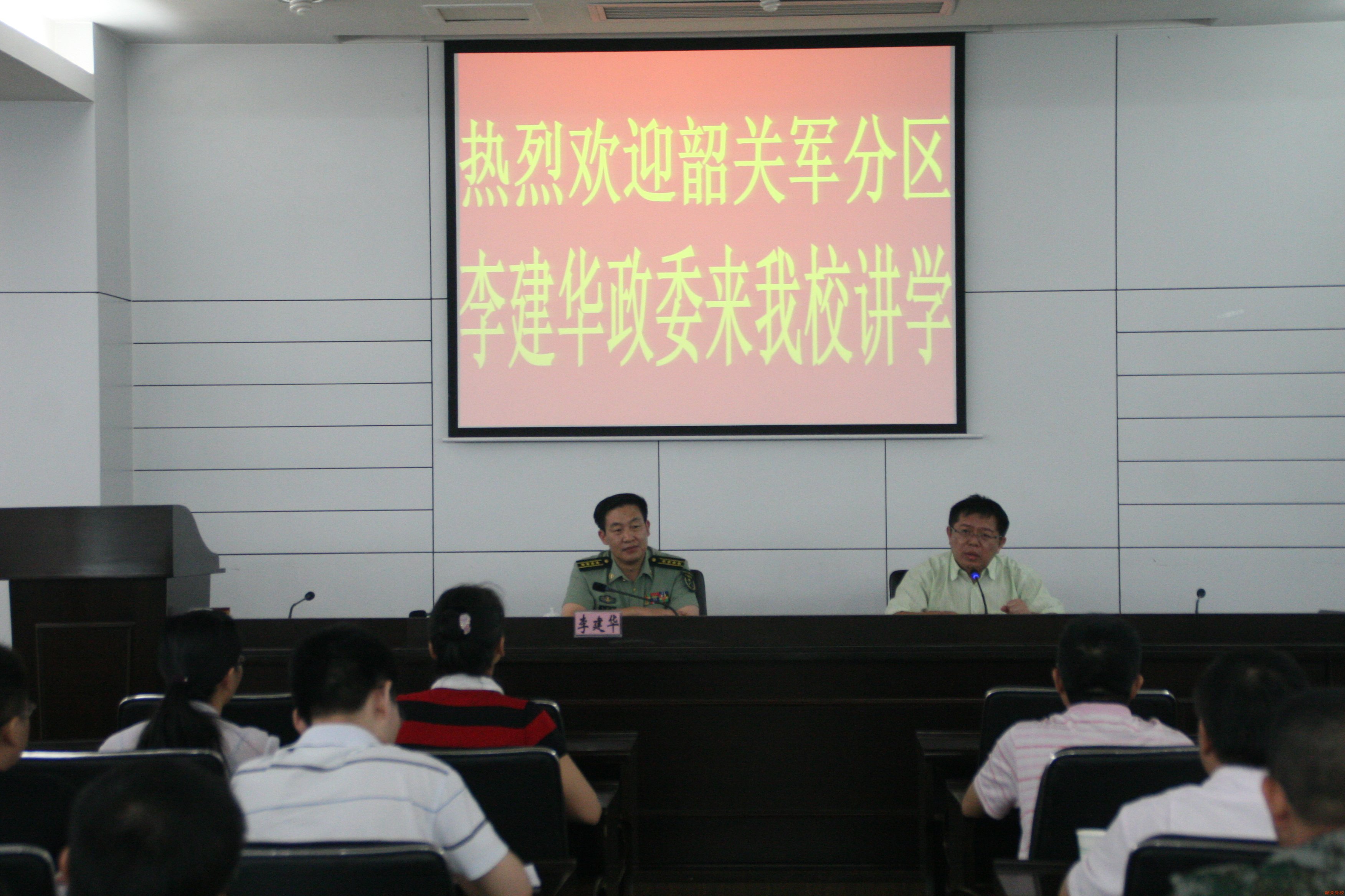 为进一步提高中青年领导干部的国防意识,培养学员吃苦耐劳的精神,增强学员的组织纪律性和集体主义观念,中共韶关市委党校在中青年领导干部培训一班、二班开设国防教育教学单元,并进行为期一周的军训,特邀请市委常委、韶关军分区政委李建华同志来我校讲学。(教务科)
